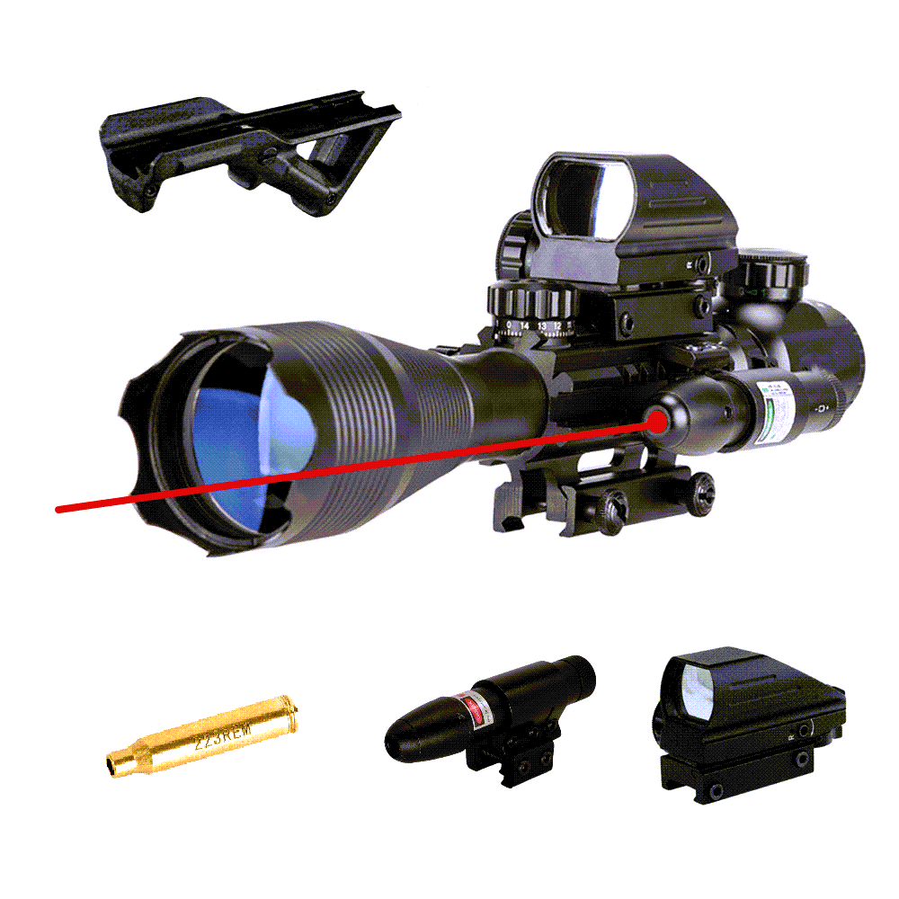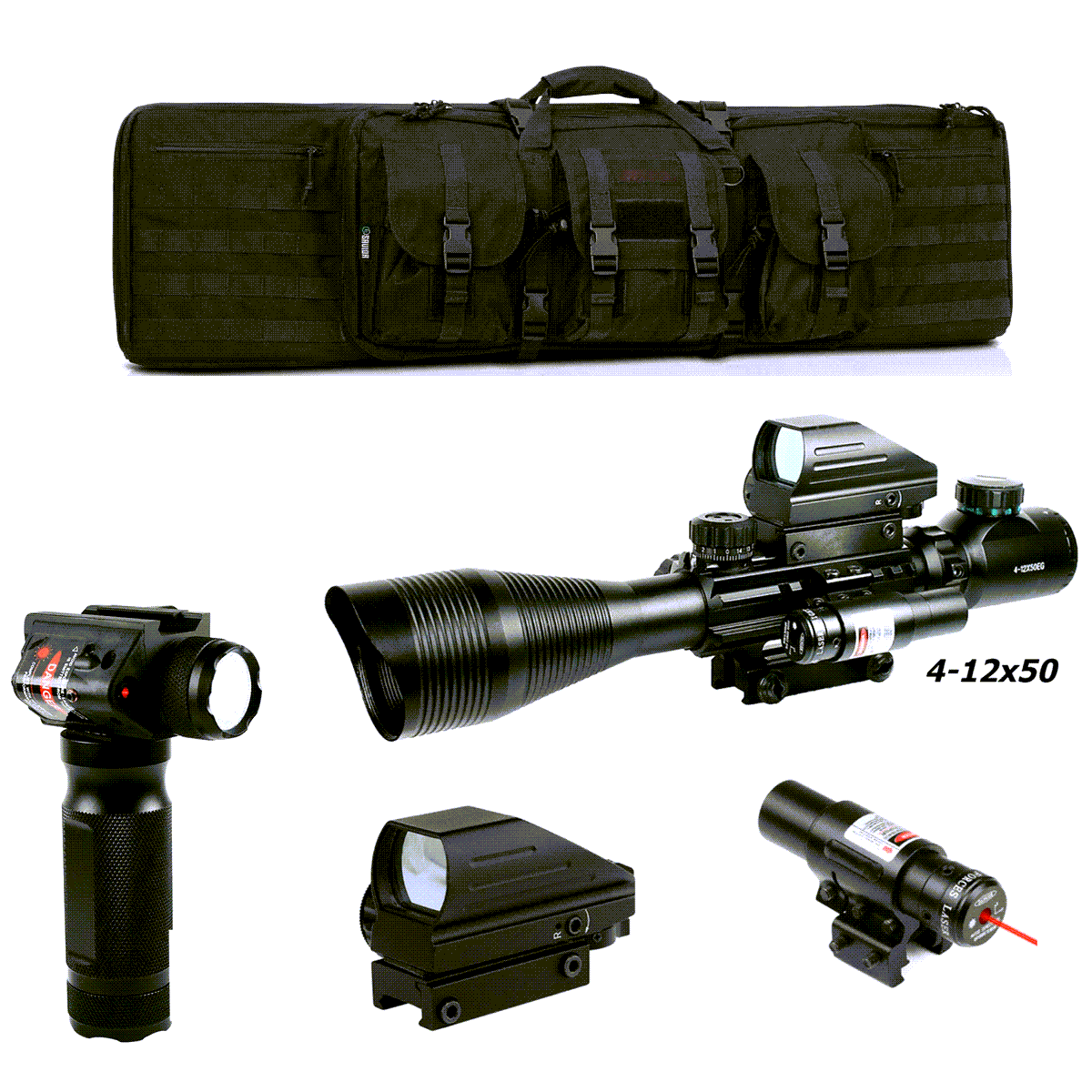 TAC-5: 4-12x50 Illuminated Reticle Scope Package - Includes 4 Mode Dot Sight and Green or Red Laser $134.99
